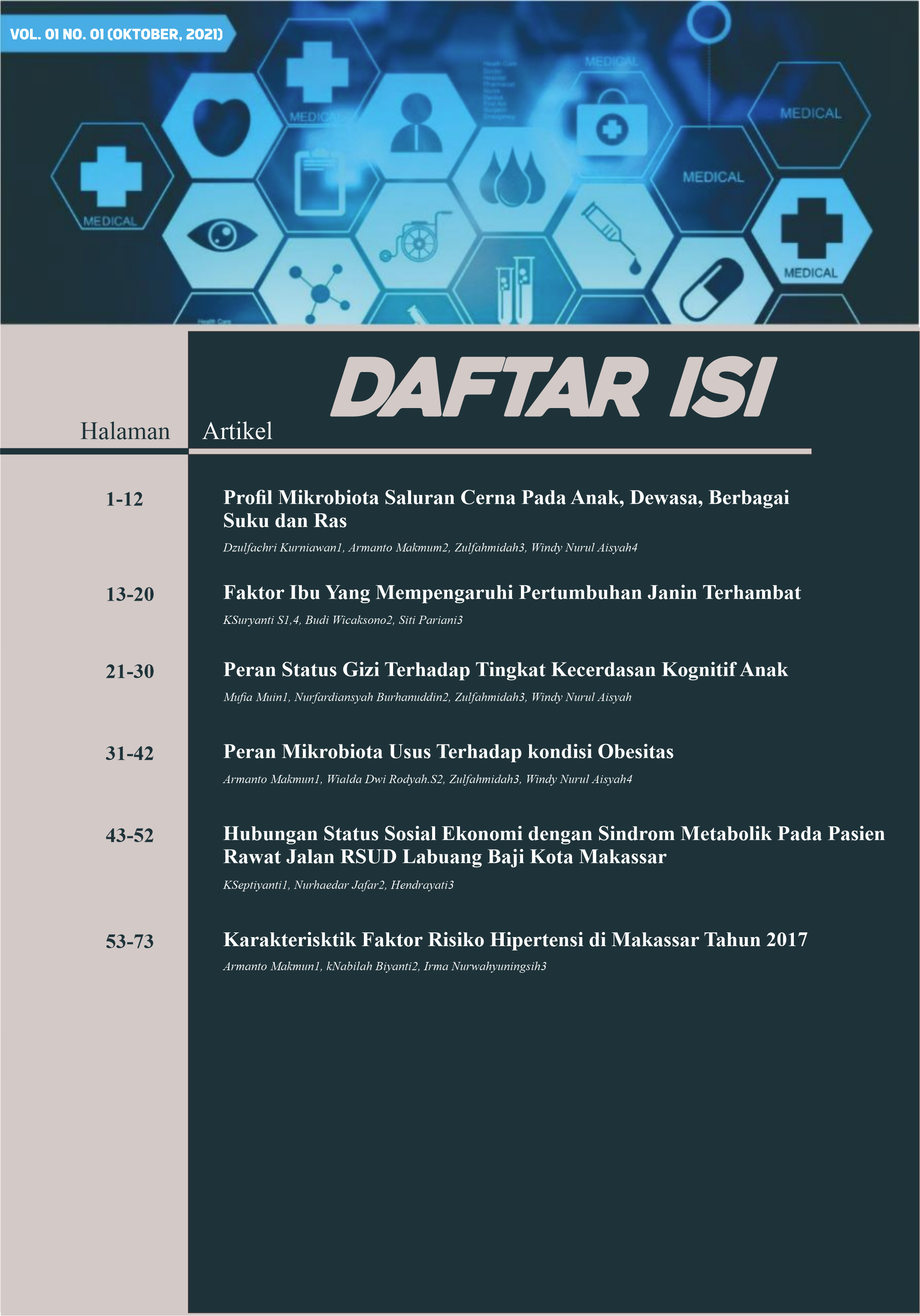 Indonesian Journal of Health is The Journal of Health is a publication of scientific work in the field of health in a broad sense such as public health, nursing, midwifery, medicine, pharmacy, health psychology, nutrition, health technology, health analysis, health information systems, medical records, hospital management and so on. In addition, the Journal was first established since 2020 by located in Makassar, South Sulawesi. Indonesian Journal of Health published on January, April, July and October with E-ISSN 2745-357X